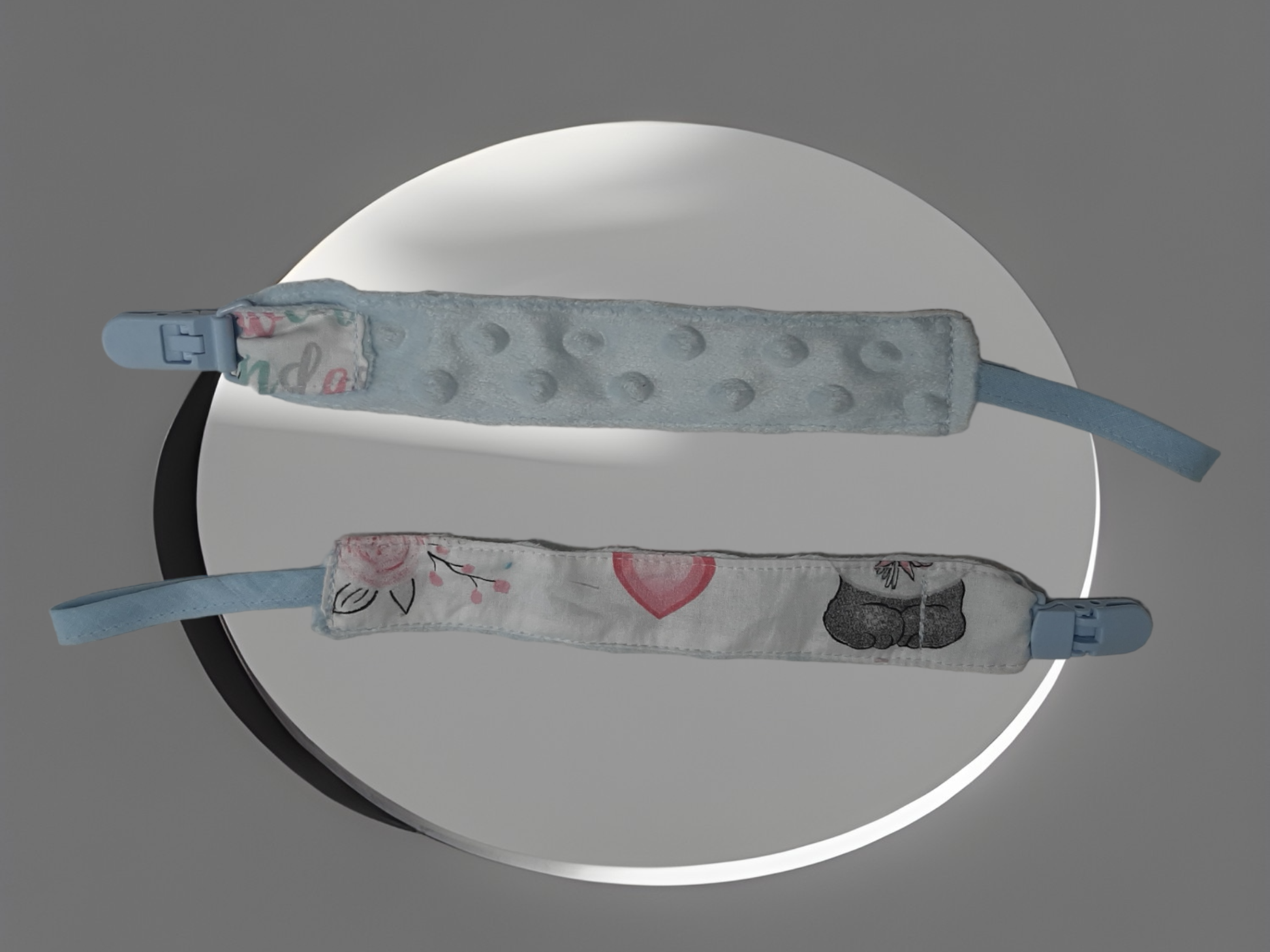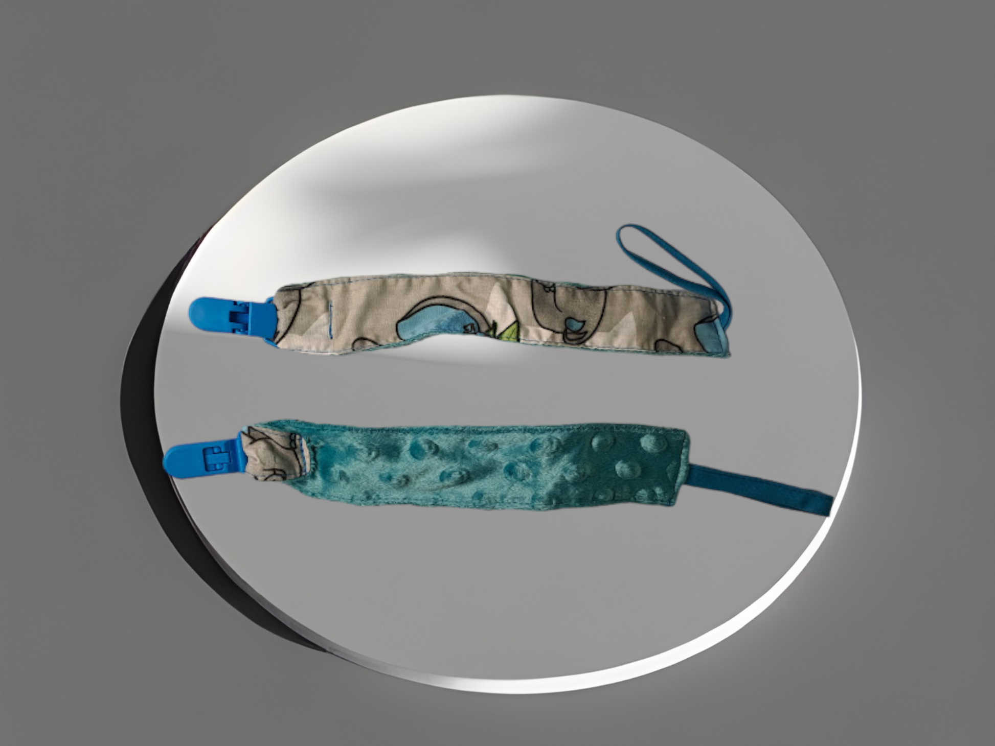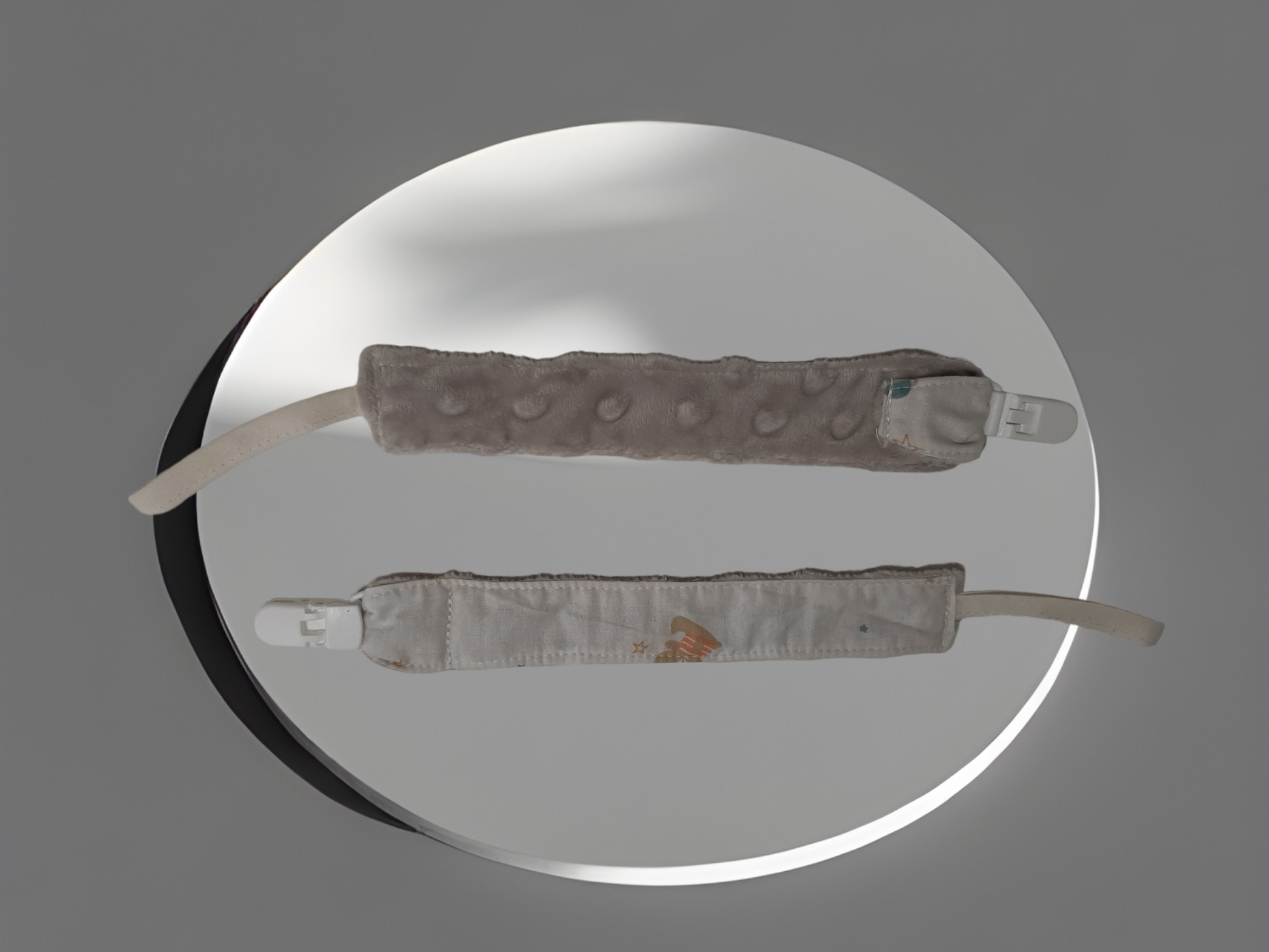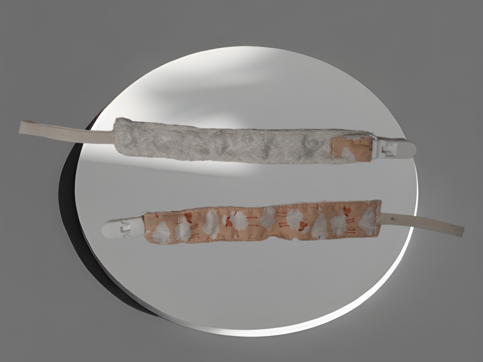 Il s'agit d'une attache-sucette neutre de style minimaliste pour bébés.
