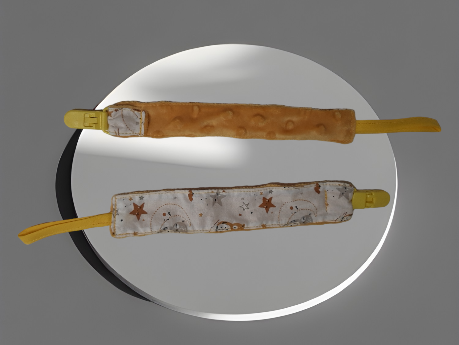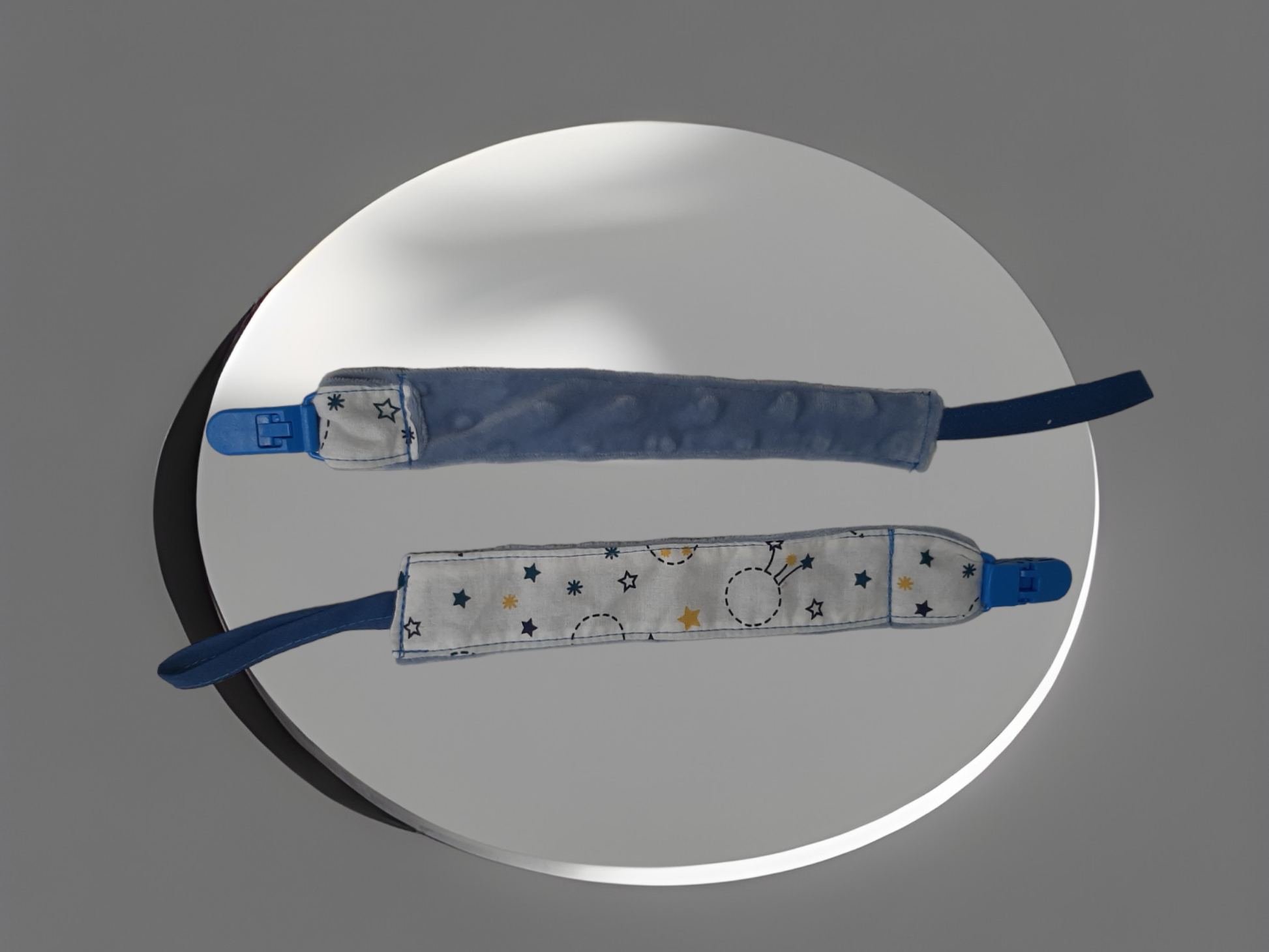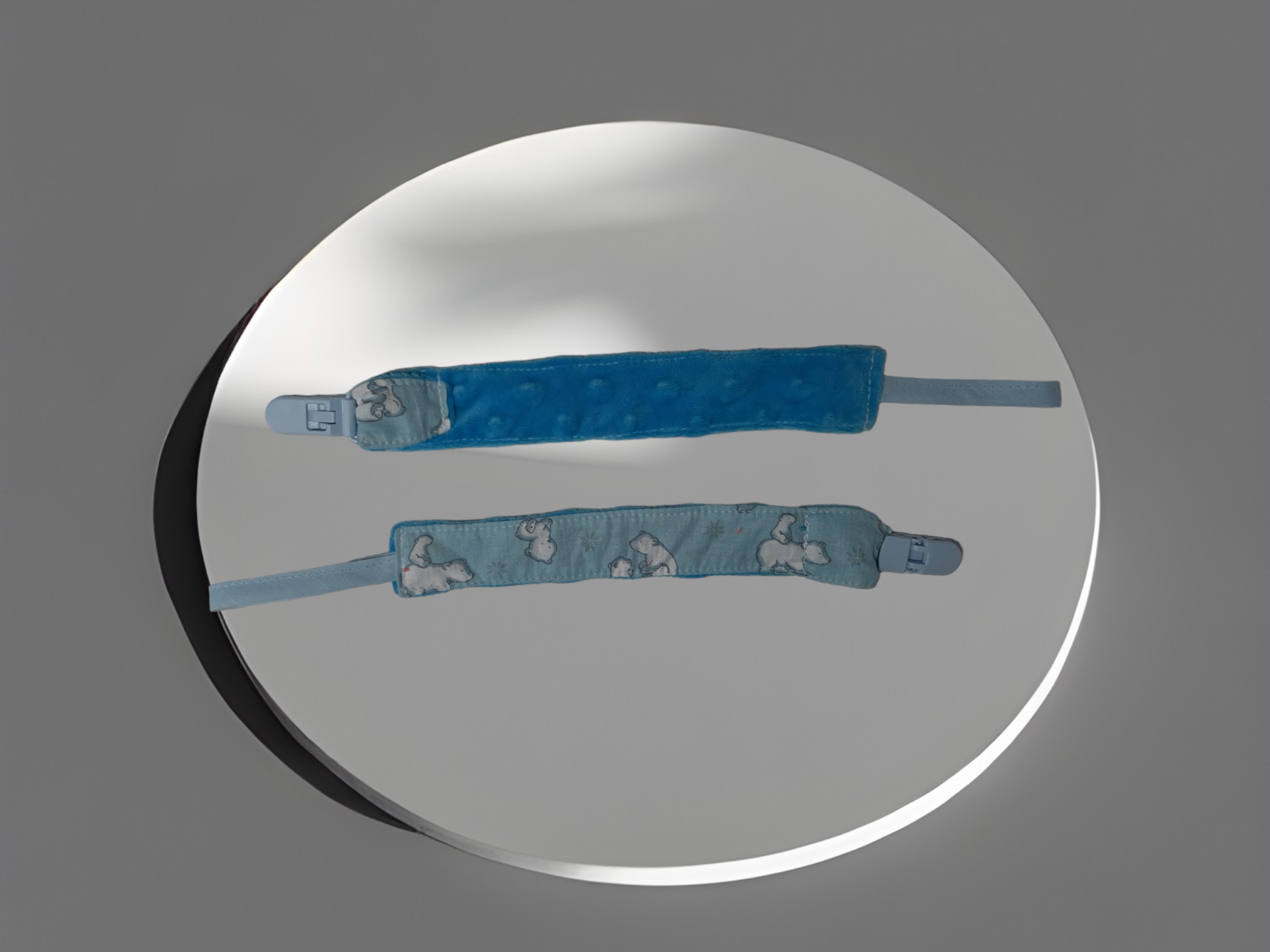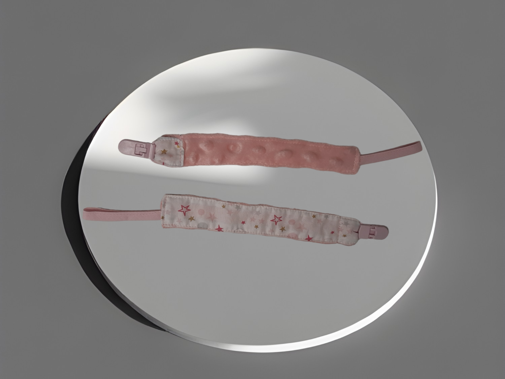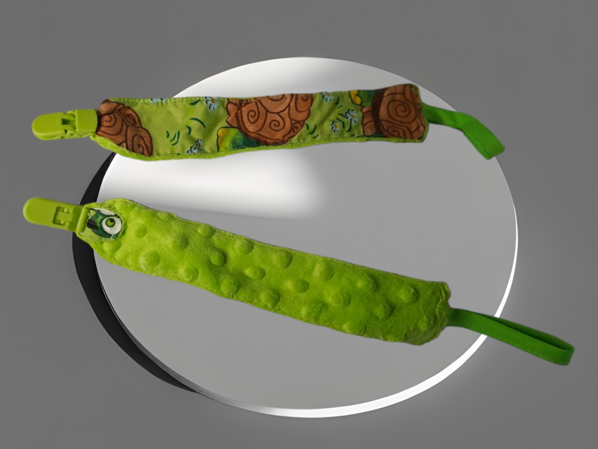 Il s'agit d'une attache-sucette neutre de style minimaliste pour bébés.